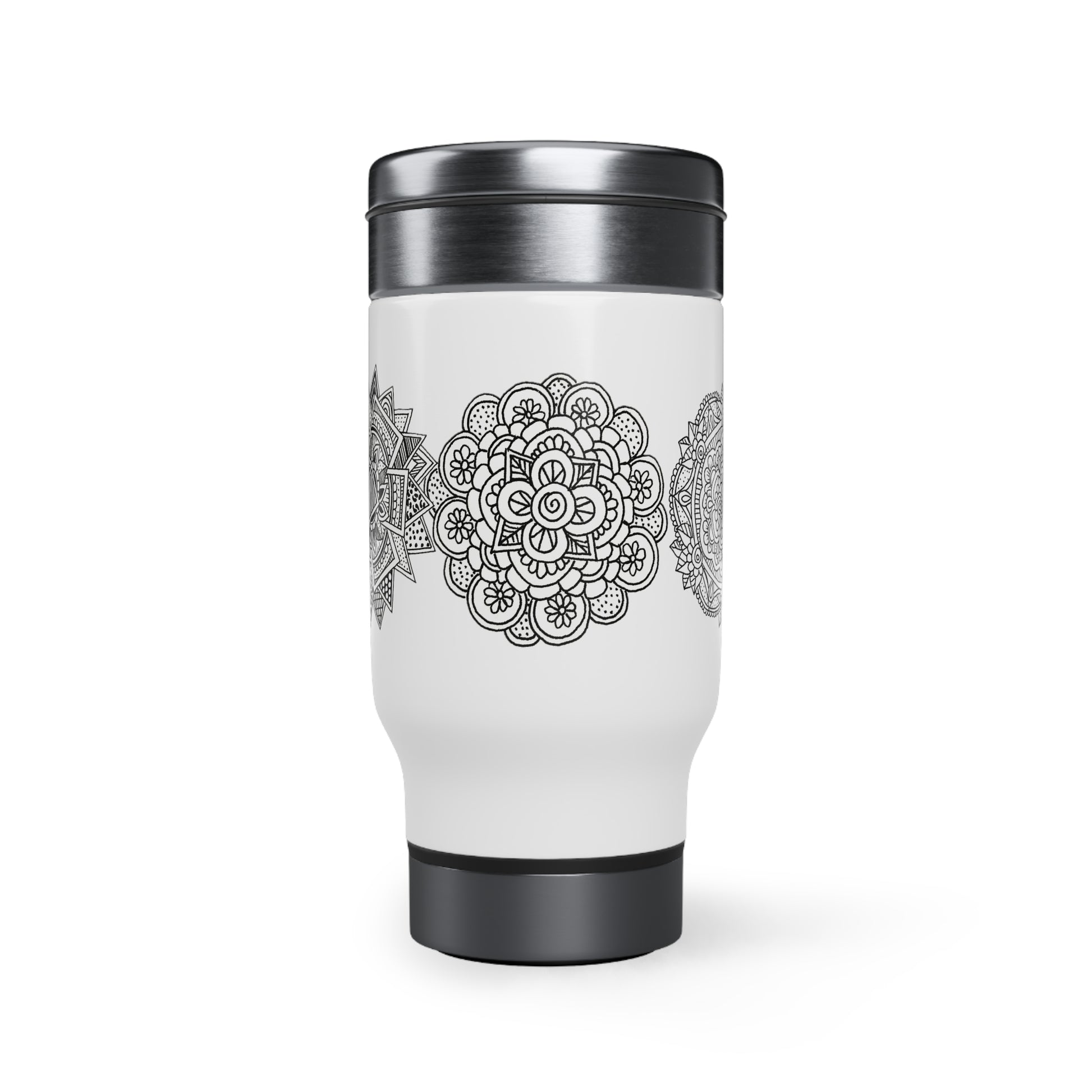 Stainless Steel Travel Mug with Handle, 14oz (Triple Flowers)