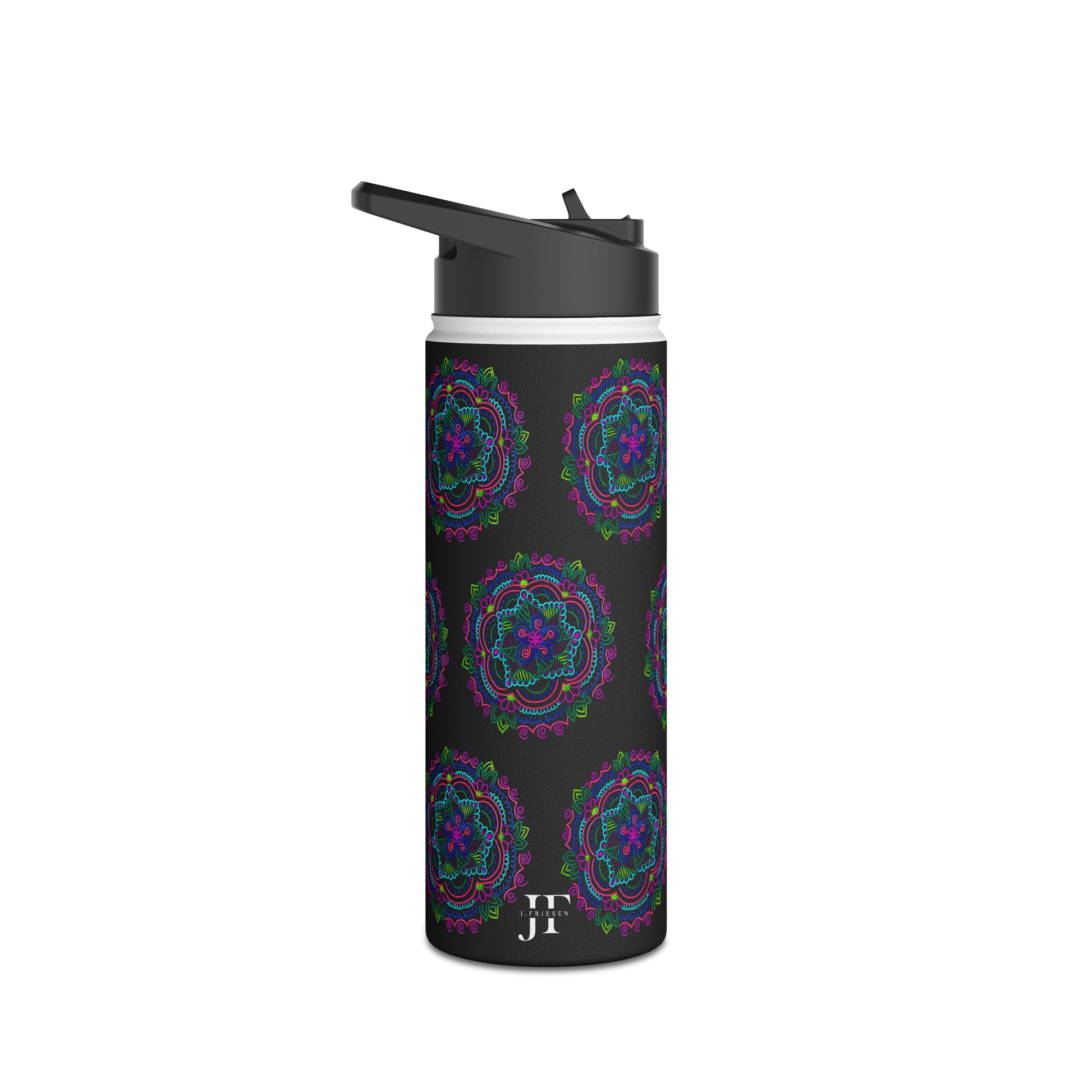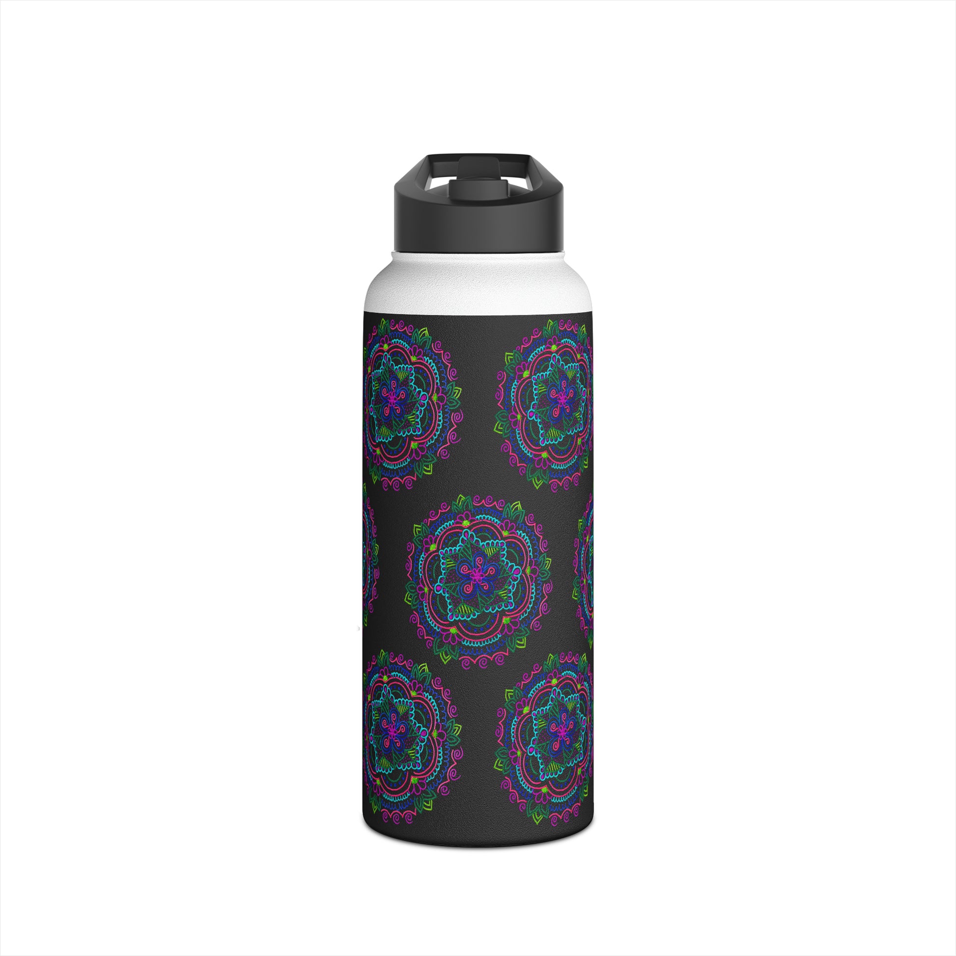 Stainless Steel Water Bottle (Black Mandala)
