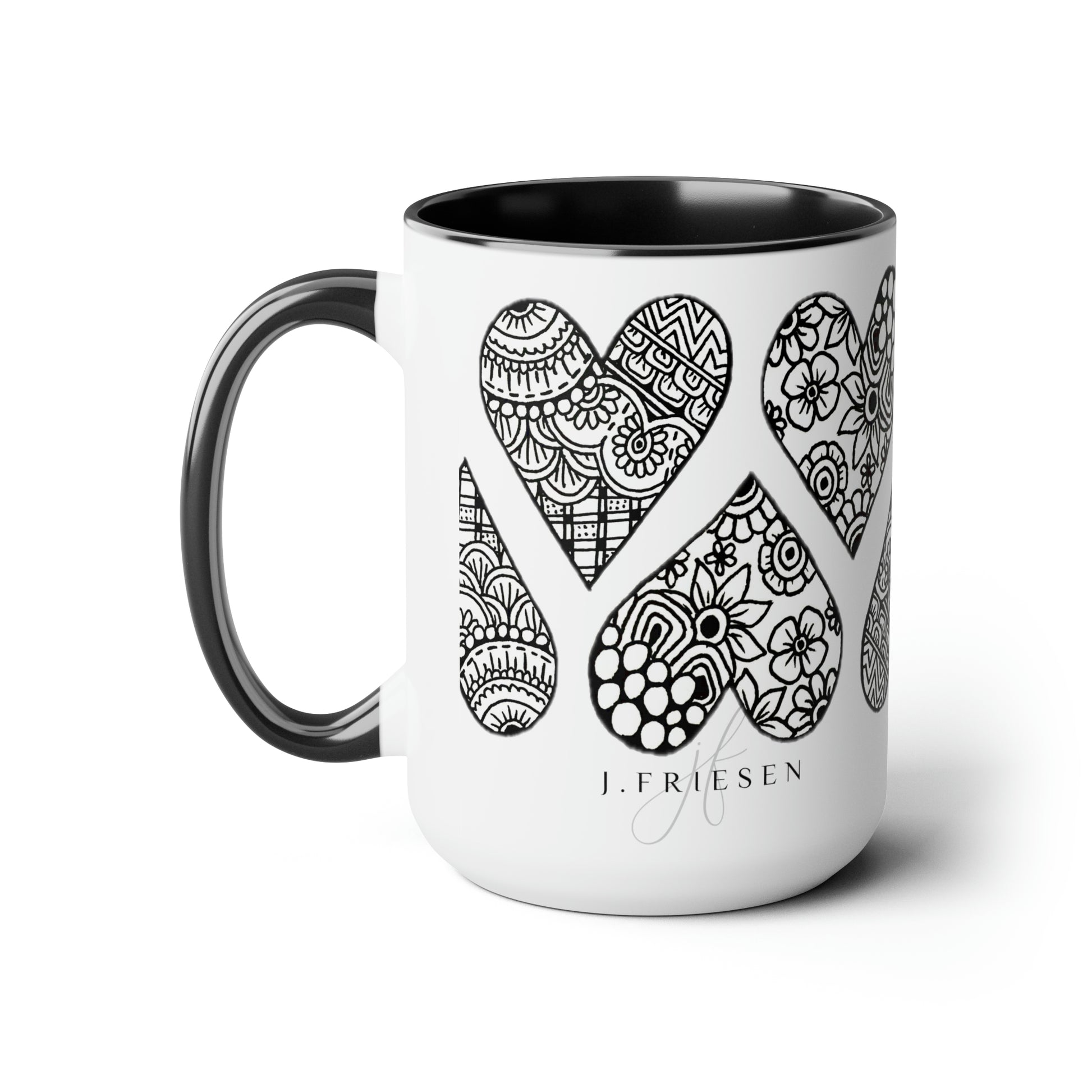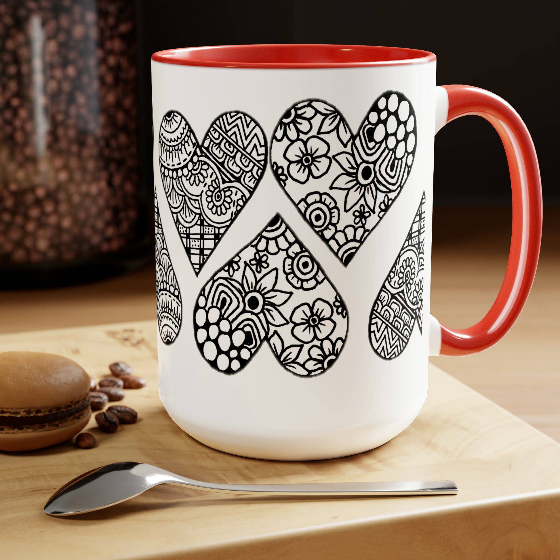Two-Tone Coffee Mugs, 15oz (Hearts)